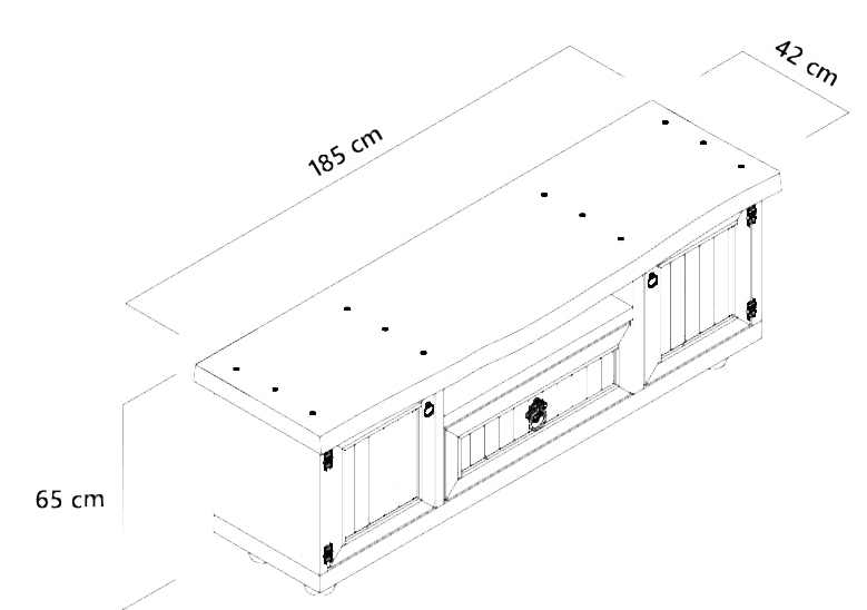 Genişlik: 185 cm Derinlik: 42 cm Yükseklik: 65 cm
